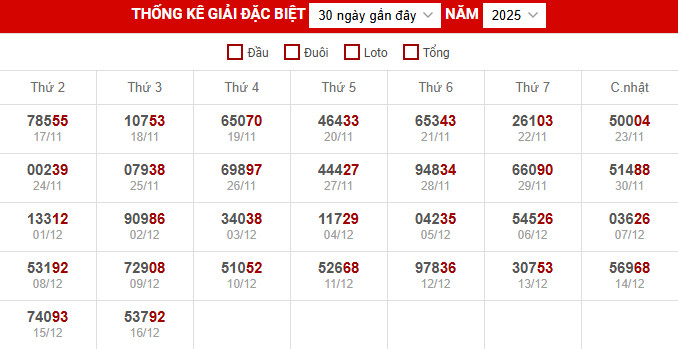 Song song với đó, giải đặc biệt trong suốt 10' tuần gần đây đã được phân tích kỹ lưỡng, giúp phơi bày những quy luật tiềm ẩn. Người chơi khi kết hợp dữ liệu khách quan này với kinh nghiệm cá nhân sẽ có thêm lợi thế trong hành trình tìm kiếm vận may.