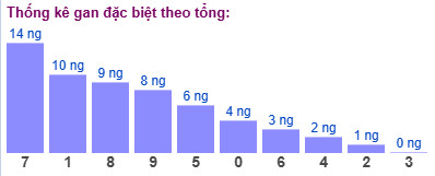 Thống kê cho thấy tổng đề lâu chưa xuất hiện nhất là tổng 7 (bao gồm 10 cặp số: 07, 16, 25, 34, 43, 52, 61, 70, 89, 98) đã 14 ngày chưa ra.