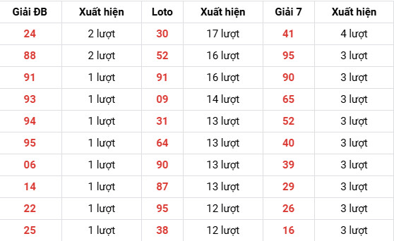 24, 88 (2 lượt) → tiếp tục duy trì vị thế nổi bật, tần suất cao nhất.