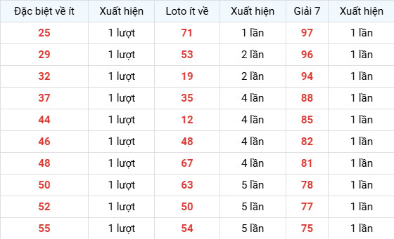 Nhóm Giải 7 xuất hiện ít (1 lần):