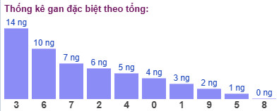 Thống kê cho thấy tổng đề lâu chưa xuất hiện nhất là tổng 3 (bao gồm 10 cặp số: 03, 12, 21, 30, 49, 58, 67, 76, 85, 94) đã 14 ngày chưa ra.