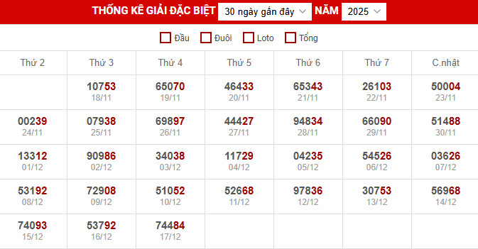 Song song với đó, giải đặc biệt trong suốt 10' tuần gần đây đã được phân tích kỹ lưỡng, giúp phơi bày những quy luật tiềm ẩn. Người chơi khi kết hợp dữ liệu khách quan này với kinh nghiệm cá nhân sẽ có thêm lợi thế trong hành trình tìm kiếm vận may.