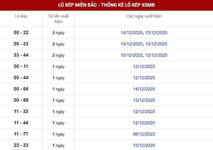 ⇒ Xem thêm: Bảng thống kê tần suất lô miền Bắc chi tiết.
