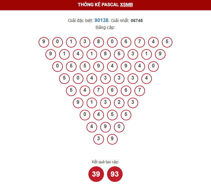 - Dựa vào thống kê Pascal, tham khảo cặp số đặc biệt dễ ra : 39 - 93