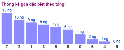 Thống kê cho thấy tổng đề lâu chưa xuất hiện nhất là tổng 7 (bao gồm 10 cặp số: 07, 16, 25, 34, 43, 52, 61, 70, 89, 98) đã 13 ngày chưa ra.