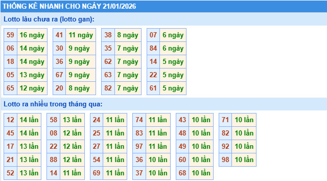 Thống kê cặp lô gan XSMB ngày 21/1/2026