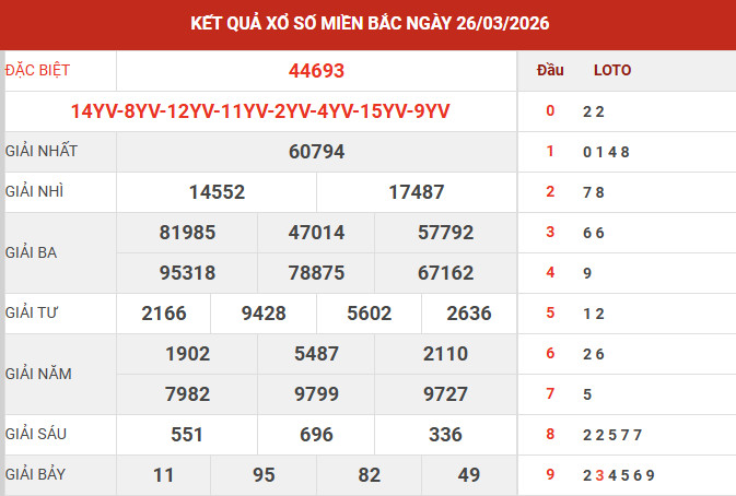 Căn cứ vào bảng kết quả xổ số miền Bắc ngày 26/3/2026 vừa được công bố, các chuyên gia tiến hành tổng hợp và phân tích các số liệu trọng tâm, qua đó mang đến những nhận định chi tiết nhằm hỗ trợ bạn đọc tham khảo và dự đoán XSMB 27/3/2026 một cách hiệu quả.