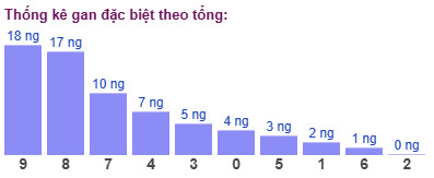 Thống kê cho thấy tổng đề lâu chưa xuất hiện nhất là tổng 9 (bao gồm 10 cặp số: 09, 18, 27, 36, 45, 54, 63, 72, 81, 90) đã 18 ngày chưa ra.