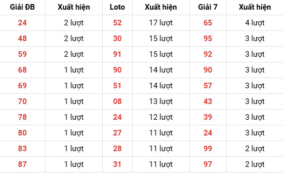 52 (17 lượt) → giữ vị trí dẫn đầu, chu kỳ lặp mạnh.