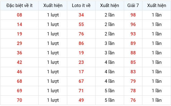 Nhóm Giải 7 xuất hiện ít (1 lần):