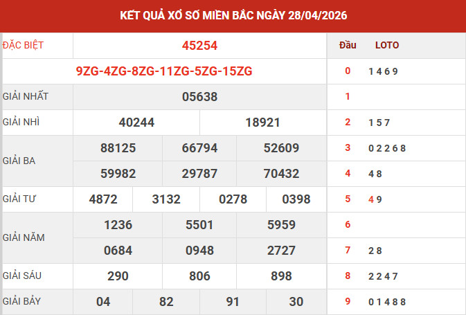 Căn cứ vào bảng kết quả xổ số miền Bắc ngày 28/4/2026 vừa được công bố, các chuyên gia tiến hành tổng hợp và phân tích các số liệu trọng tâm, qua đó mang đến những nhận định chi tiết nhằm hỗ trợ bạn đọc tham khảo và dự đoán XSMB 29/4/2026 một cách hiệu quả.