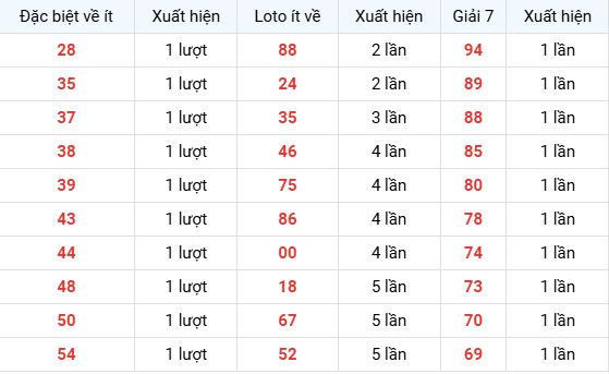 🔎 Nhóm số đặc biệt về ít (ĐB ít xuất hiện)