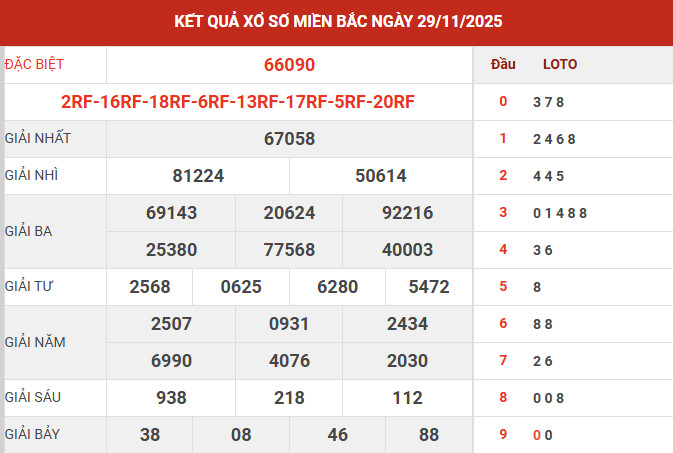 Ngày 29/11/2025, giải đặc biệt của Xổ số Miền Bắc thuộc về dãy số 66090, trong đó cặp 90 là tâm điểm dành cho những ai quan tâm tới các dấu hiệu lặp lại.