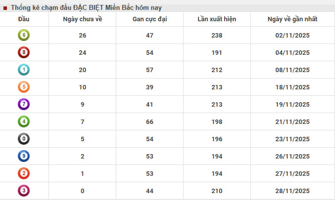 Thống kê chạm đầu đặc biệt XSMB 30/11/2025 hôm nay