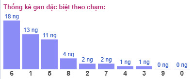 Thống kê cho thấy chạm đề lâu chưa xuất hiện nhất là chạm 6 (bao gồm 19 cặp số có chứa số 6), đã 18 ngày chưa ra.