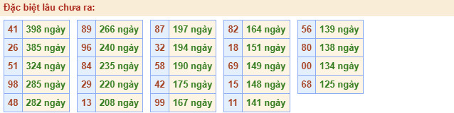 • Cặp số 41 đến nay vẫn chưa ra là 398 ngày