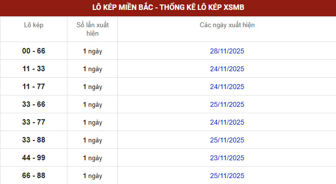 Thống kê đài xổ số miền Bắc chủ nhật lô tô kép biên độ mười ngày