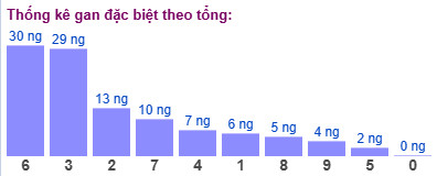Thống kê cho thấy tổng đề lâu chưa xuất hiện nhất là tổng 6 (bao gồm 10 cặp số: 06, 15, 24, 33, 42, 51, 60, 79, 88, 97) đã 30 ngày chưa ra.