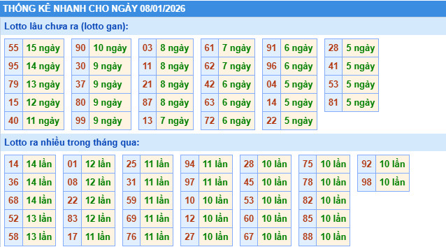 ​Thống kê lô tô miền Bắc nhanh ngày 8/1/2026