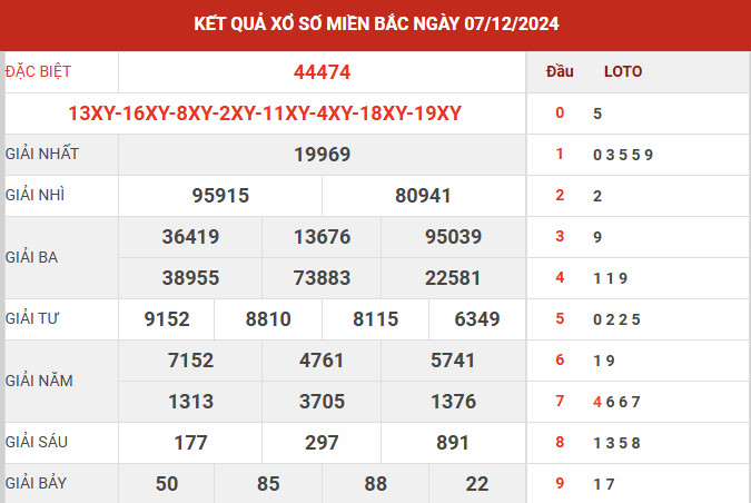 Ngày 7/12/2025, giải đặc biệt của Xổ số Miền Bắc thuộc về dãy số 44474, trong đó cặp 74 là tâm điểm dành cho những ai quan tâm tới các dấu hiệu lặp lại.