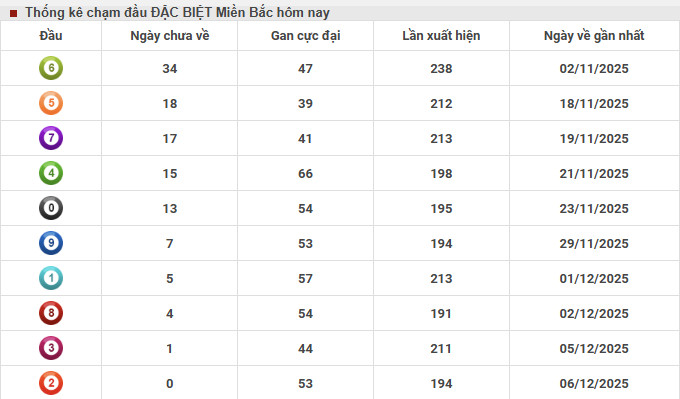 Thống kê cho thấy chạm đề lâu chưa xuất hiện nhất là chạm 7 (bao gồm 19 cặp số có chứa số 7), đã 10 ngày chưa ra.