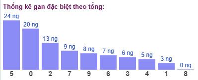 Thống kê cho thấy tổng đề lâu chưa xuất hiện nhất là tổng 5 (bao gồm 10 cặp số: 05, 14, 23, 32, 41, 50, 69, 78, 87, 96) đã 24 ngày chưa ra.