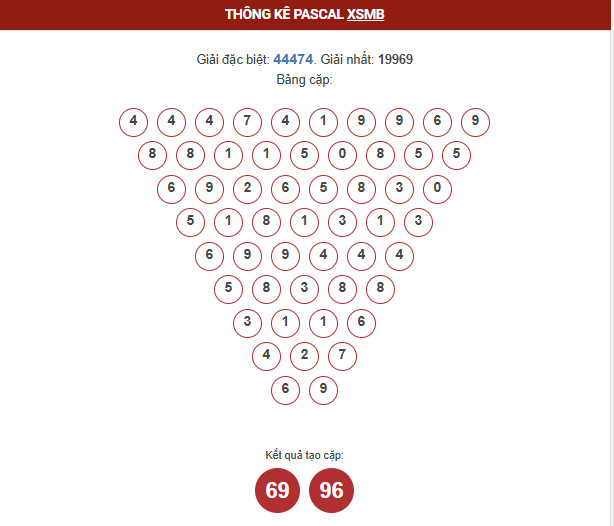 - Dựa vào thống kê Pascal, tham khảo cặp số đặc biệt dễ ra : 69 - 96