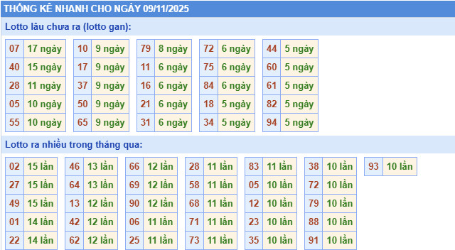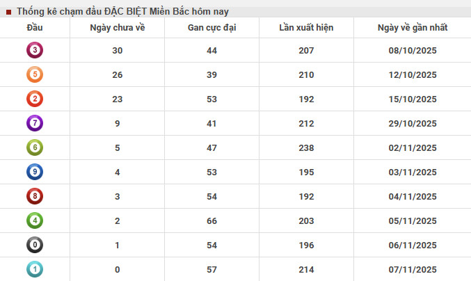 Thống kê miền Bắc nhanh ngày 9/11/2025