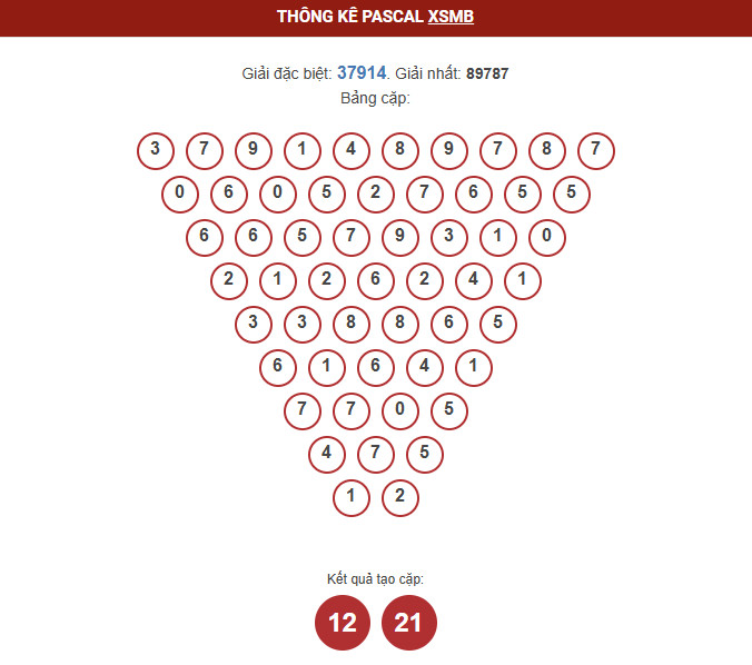 - Dựa vào thống kê Pascal, tham khảo cặp số đặc biệt dễ ra : 12 - 21