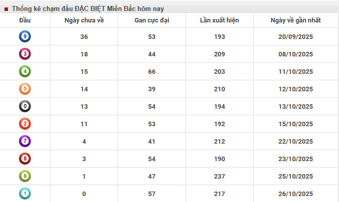 Thống kê chạm đầu đặc biệt XSMB 28/10/2025 hôm nay