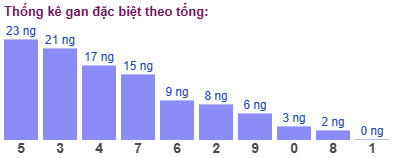 Thống kê cho thấy tổng đề lâu chưa xuất hiện nhất là tổng 5 (bao gồm 10 cặp số: 05, 14, 23, 32, 41, 50, 69, 78, 87, 96) đã 23 ngày chưa ra.