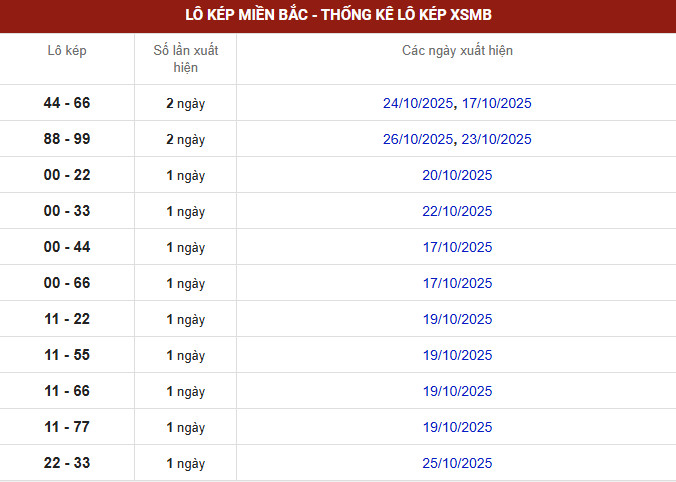 Thống kê đài xổ số miền Bắc thứ 3 lô tô kép biên độ mười ngày
