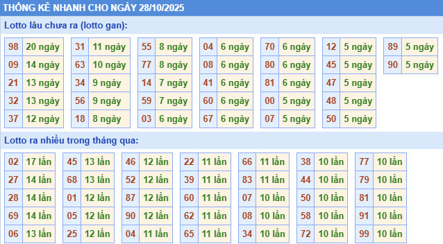 Thống kê miền Bắc nhanh ngày 28/10/2025