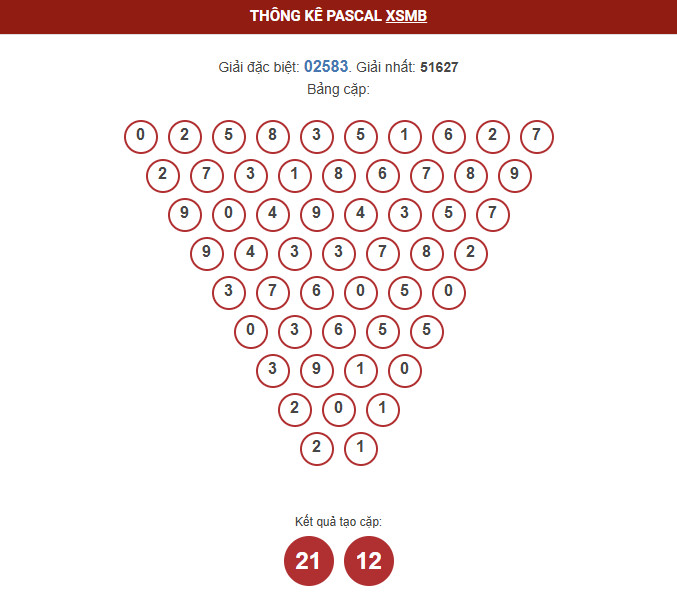 - Dựa vào thống kê Pascal, tham khảo cặp số đặc biệt dễ ra : 21 - 12