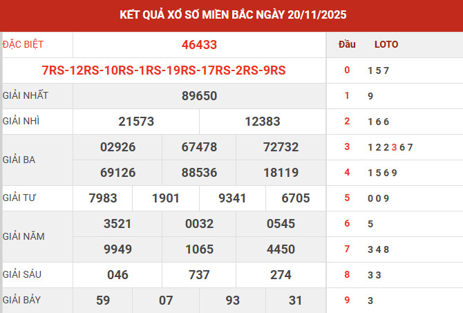 Ngày 20/11/2025, giải đặc biệt của Xổ số Miền Bắc thuộc về dãy số 46433, trong đó cặp 33 là tâm điểm dành cho những ai quan tâm tới các dấu hiệu lặp lại.