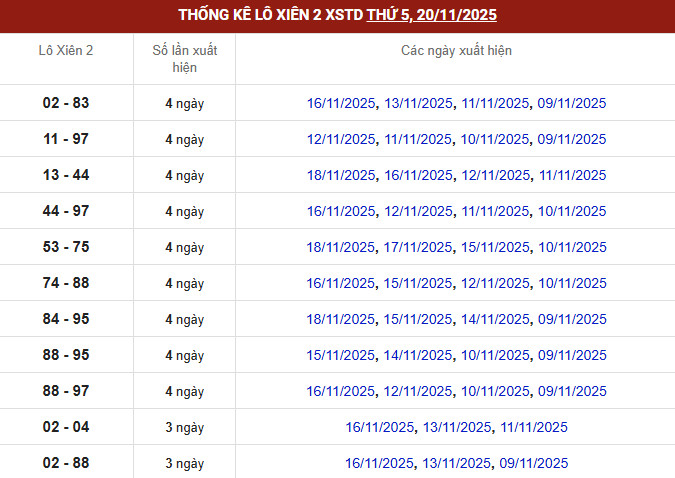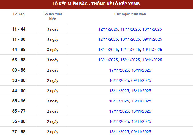 ⇒ Xem thêm: Bảng thống kê tần suất lô miền Bắc chi tiết.