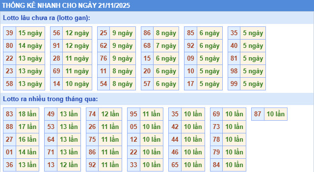 Thống kê miền Bắc nhanh ngày 21/11/2025